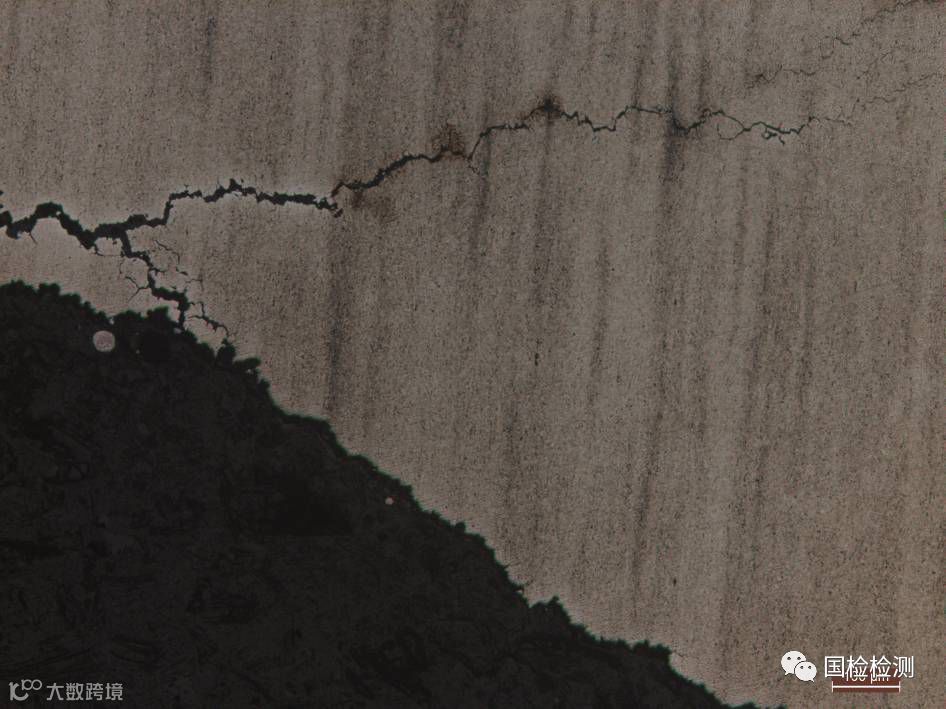 垂直1#螺栓断面截取纵向试样进行金相观察。图16所示为断面附近金相组织,可见断面附近存在明显的沿晶分支裂纹,断面及分支裂纹两侧均未发现明显的脱碳或増碳现象。