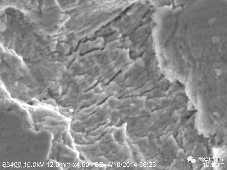断面G区微观形貌,见图11-122所示,可见明显的准解理断裂形貌。