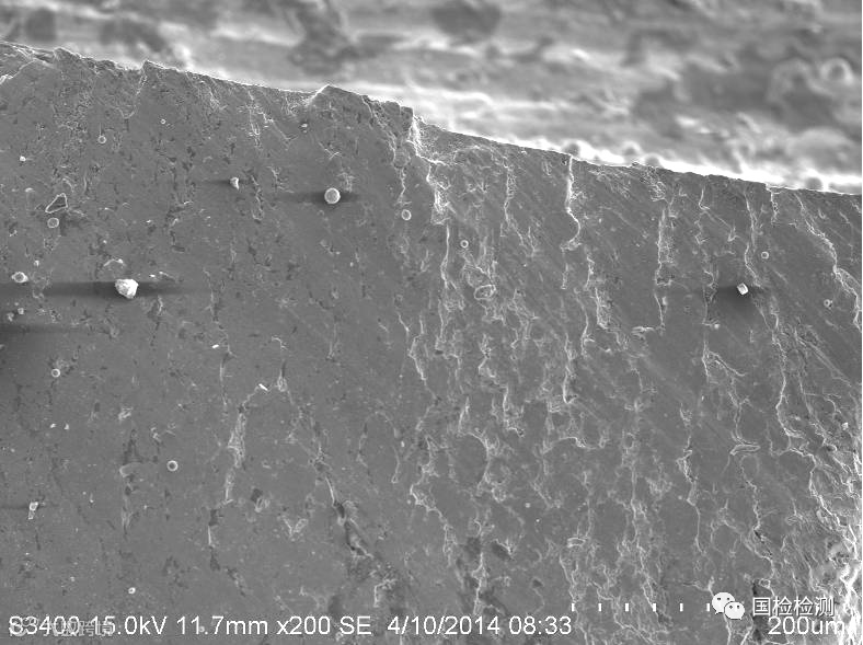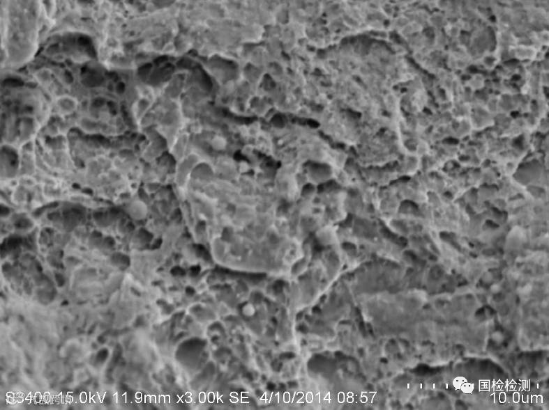 断面H区微观形貌,见图11-123所示,可见明显的剪切韧窝,为终断区。