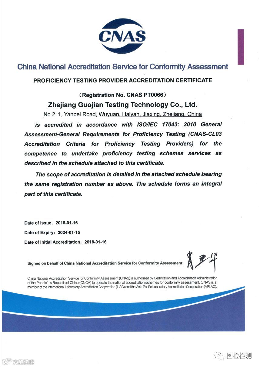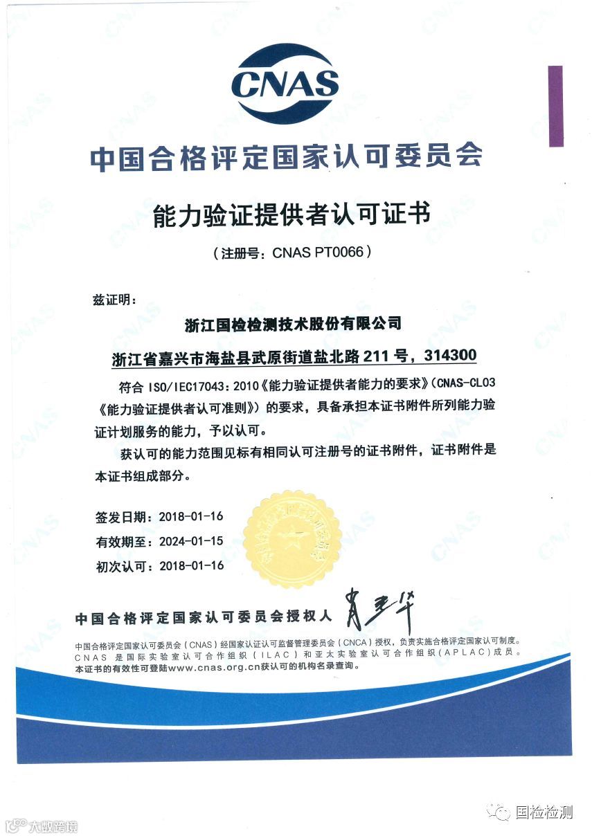 日前,“国检检测”又通过了中国合格评定国家认可委员会能力验证提供者(PTP)的认可,可在紧固件领域开展能力验证服务。