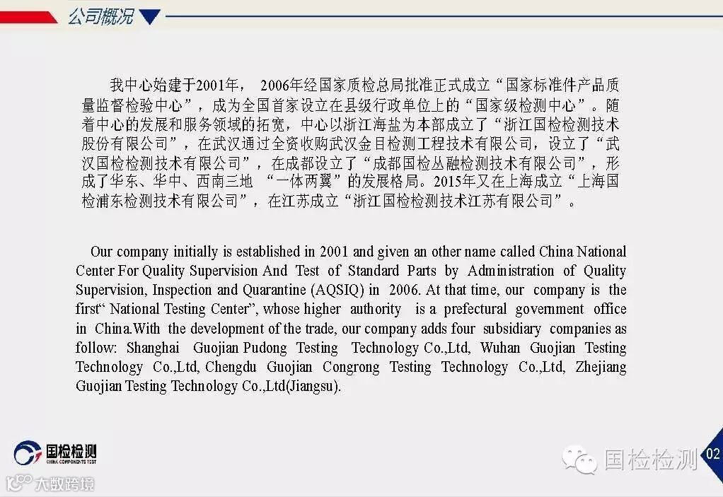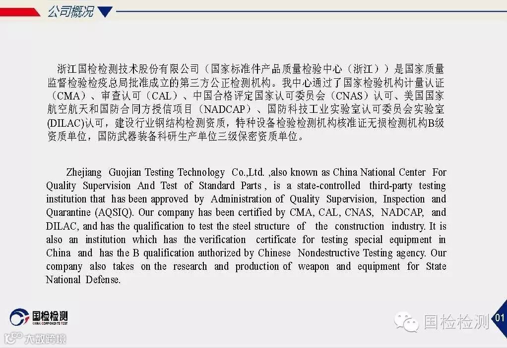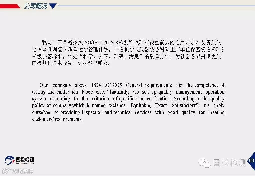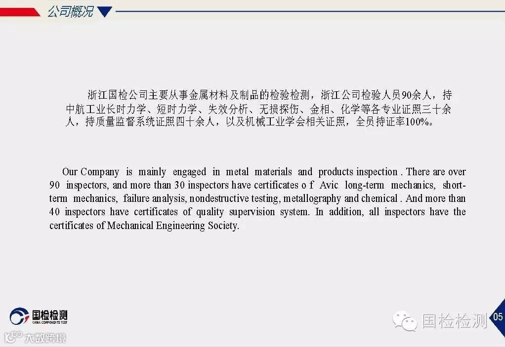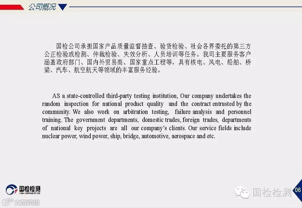 国检使命:致力于材料、基础零部件的专业检测;通过理念创新、技术创新、服务创新;为客户创见更大价值。