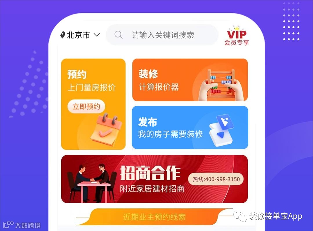 随着装修市场的竞争日趋激烈,如何有效获客成为了装企的首要难题。为了解决这个问题,全新的装修客户平台,致力于为广大装企提供最优质的获客服务。