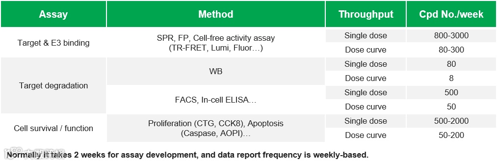 另外,他介绍,维亚生物Assay平台具备从目标蛋白与E3泛素连接酶的结合亲和力、目标蛋白降解能力到PROTAC分子表型功能研究的全流程服务能力,可针对客户PROTAC项目需求提供相应的研究服务。