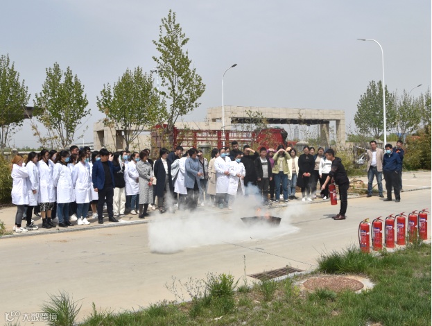 公司全员参与安全应急演练,演练现场,行政部负责人讲解突发火灾的处置方法并带头示范干粉灭火器的正确使用步骤及灭火技巧,随后员工代表实操演练,操作灭火器灭火。