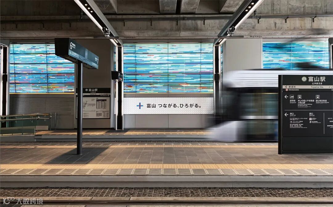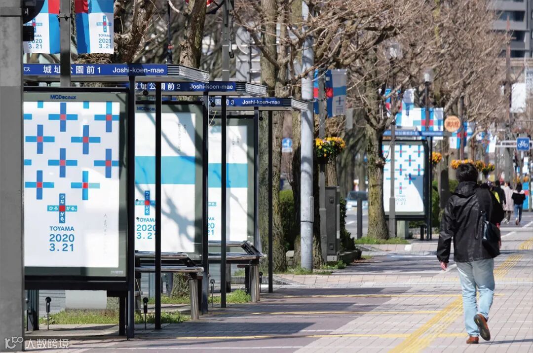 开始营业的,不仅仅是作为活动核心的富山站,在市内行驶的路面电车、街道的横幅、公交车站等的广告、向市民分发的纪念品等,都以统一的的视觉印象进行装饰,在祝贺新街道的完成的同时,也提高了人们对于今后生活的期待。项目的象征标志是委托当地的设计师设计,采用了能在各种场景中展开运用的高通用性设计。