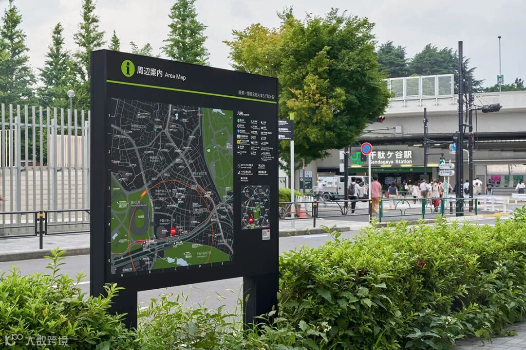 这是大阪府松原市图书馆的导视设计方案。这一建筑就像周边的很多古墓一样,漂浮在蓄水池里,象征这一画面的图形也作为VI在导视设计中被运用。