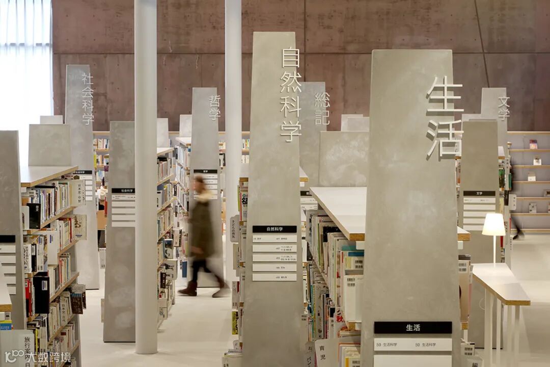 从有机排列的书架构思而成了「森林路标」这一设计概念。就像在森林中漫步一样,一边追踪散布在图书馆各个地方的标志,一边寻找目标书籍。图书馆最终通过公开征集,决定了「读书之森」这一与其形象相当符合的名称。