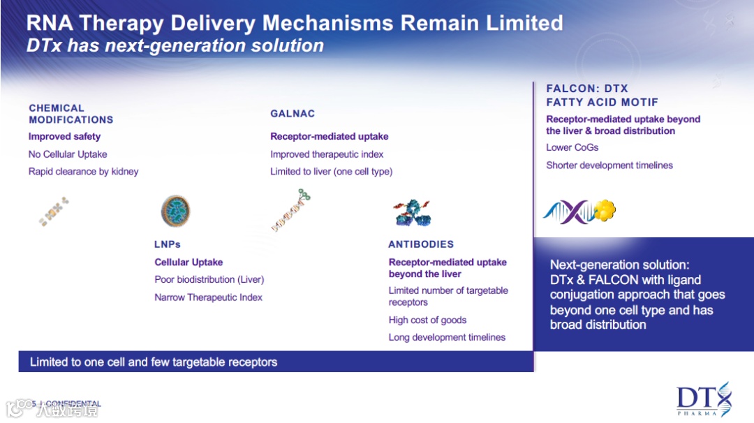 “DTx Pharma利用脂肪酸作为载体,既可以促进细胞摄取,又将促进组织选择性。这一技术突破使得靶向肝脏以外的其它组织成为可能,从而创造更多新的治疗机会。公司亦正在积极开发针对眼、中枢神经系统和各种肌肉疾病的产品管线。”