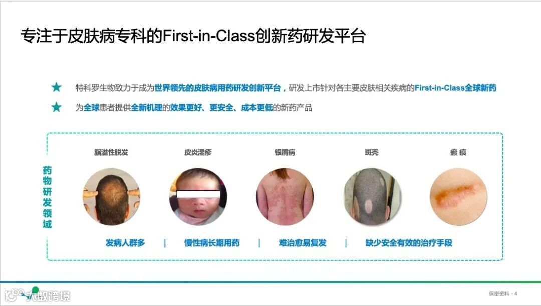 “特科罗生物专注于皮肤疾病治疗用小分子药物研发的生物医药创新公司,公司药物研发方向包括脱发治疗、银屑病治疗、皮炎等市场稀缺性标的。公司临床前研发的治疗脂溢性脱发创新药拥有全球性知识产权,且有详实的论文数据作为支撑,即将进入临床一期研究。银屑病和湿疹项目已经获得药物候选化合物,进入临床前CMC阶段研究,明年可望递交临床一期申请。”