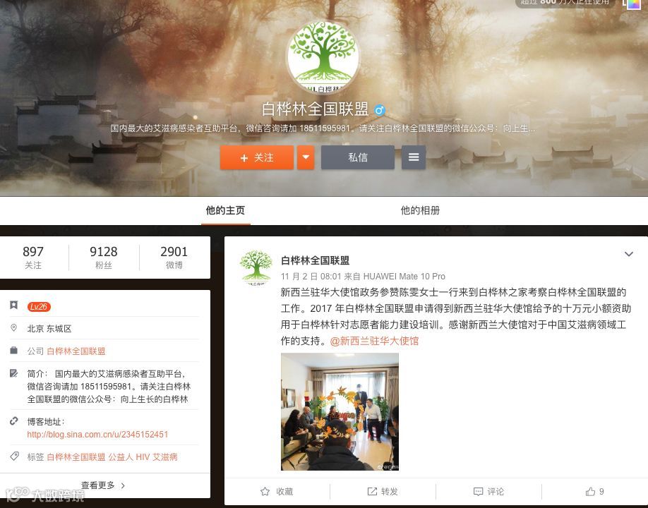在美联社的采访中,贺建奎提及了自己招募志愿者的方式是通过一家叫白桦林联盟的机构。白桦林全国联盟(下称白桦林)是国内一个艾滋病感染者互助平台,由白桦个人创建,据称,其目前辐射全国各地感染者人数超过五万人。