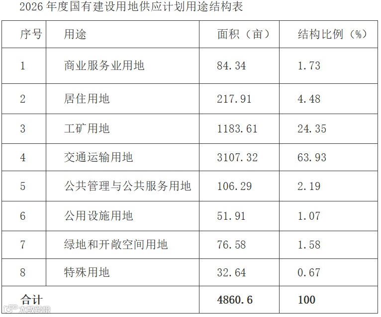 深入分析2026年度的供地计划,一个最突出的特点是土地资源配置的“强基导向”与“产业优先”。全年4860.6亩的供应总量,在用途上形成了极为清晰的梯次结构。