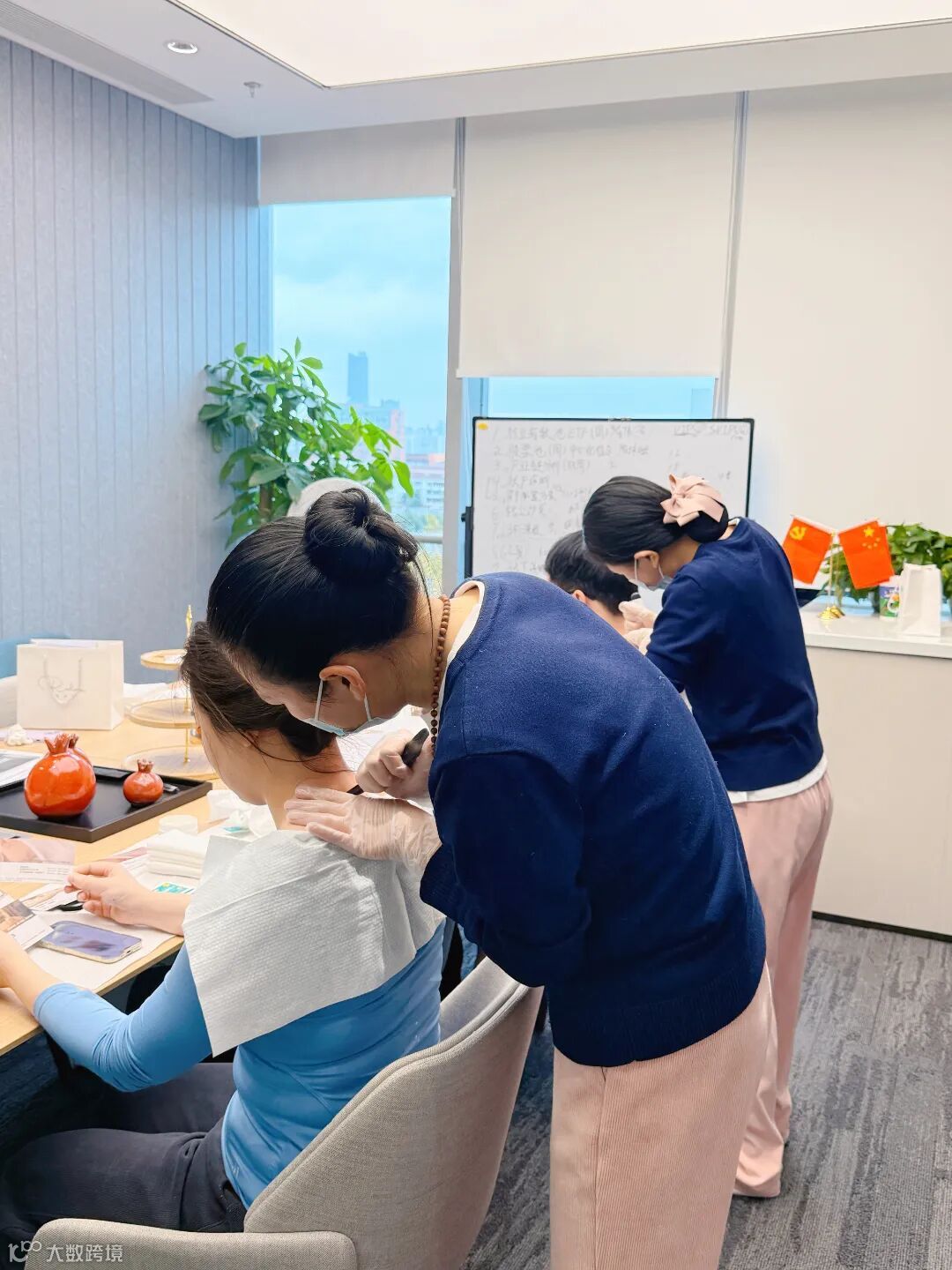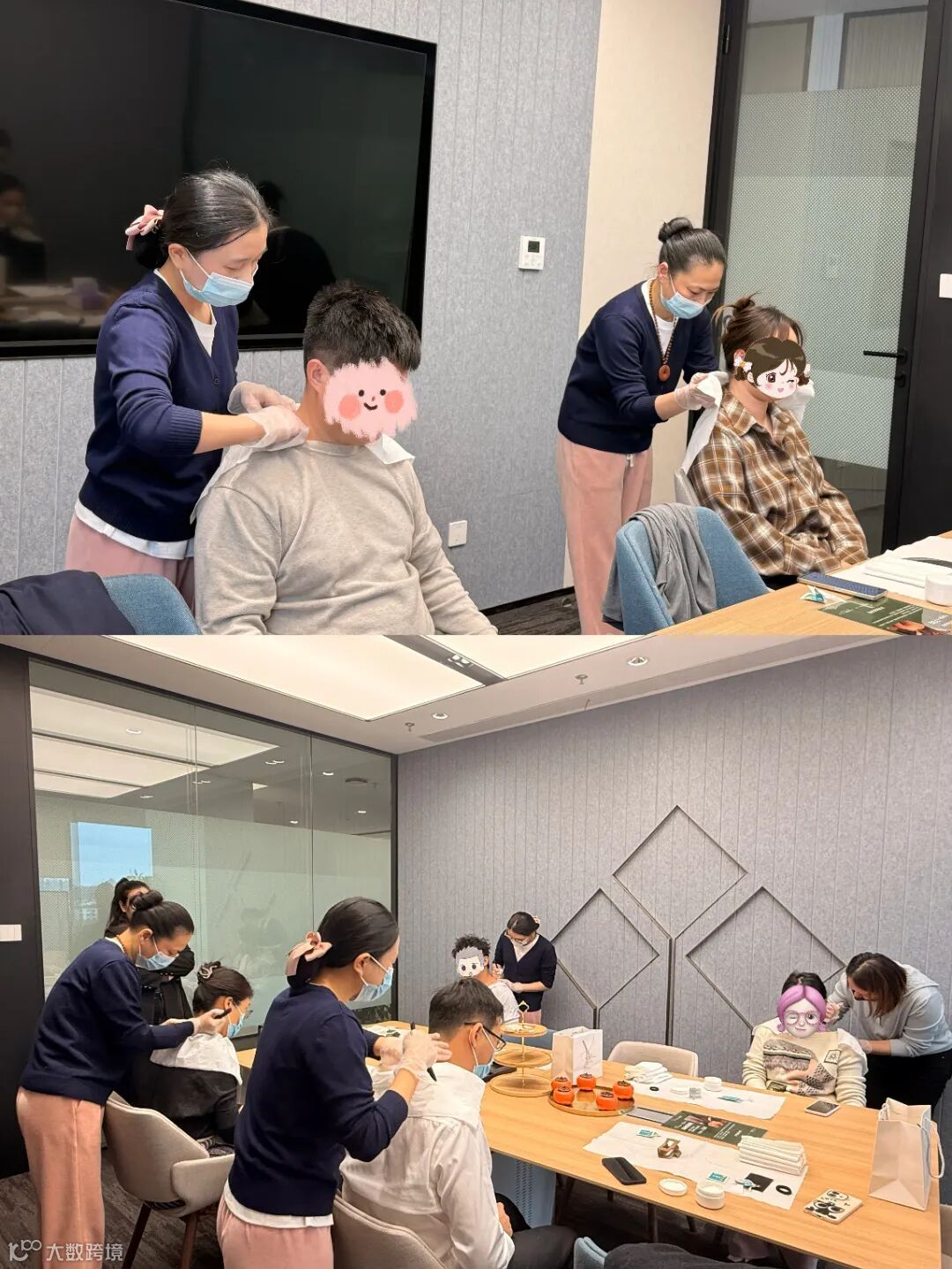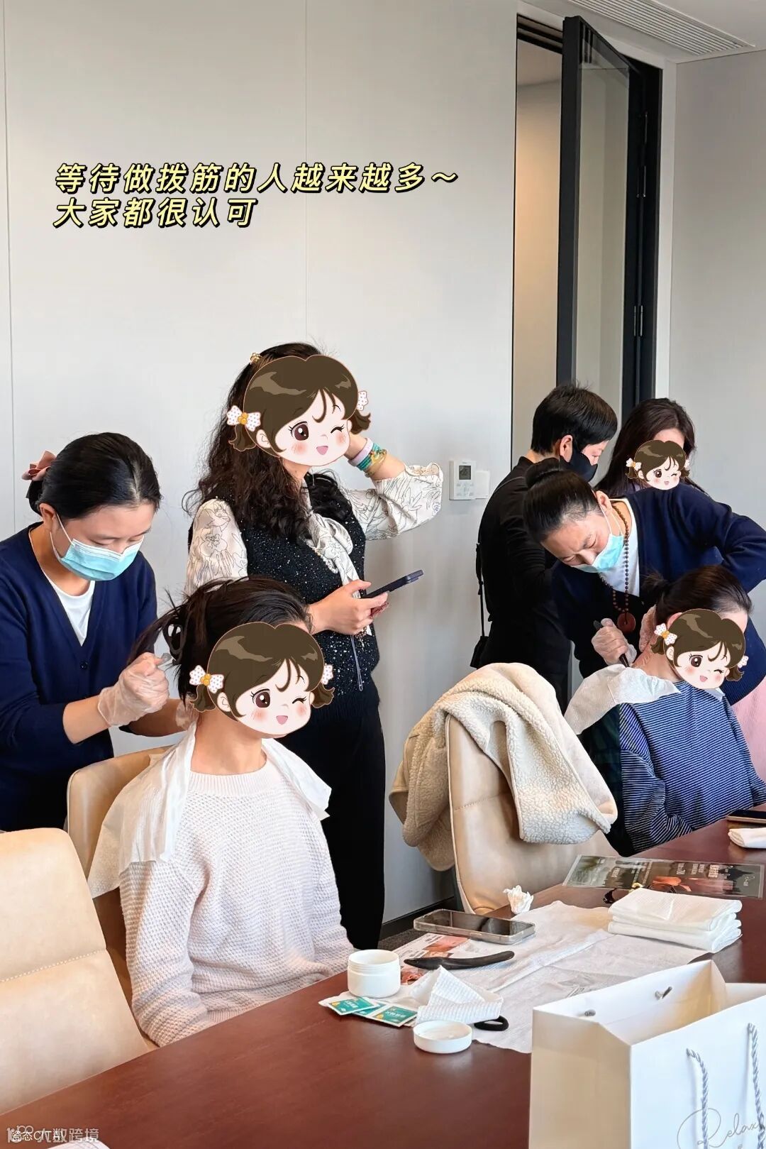 我们的理疗师团队携带专业的理疗工具准时到位,凭借多年的实操经验,先为每位员工进行简单的肩颈状况问询,再根据不同的劳损程度,精准开展拨筋护理。
