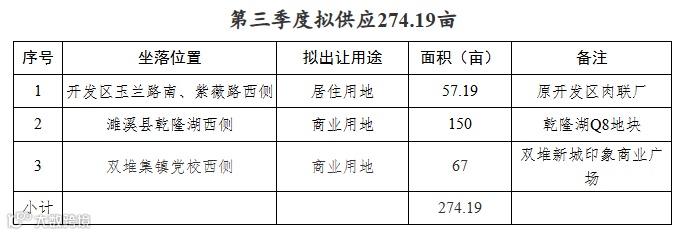 供地计划:944.8亩土地的四季度布局
