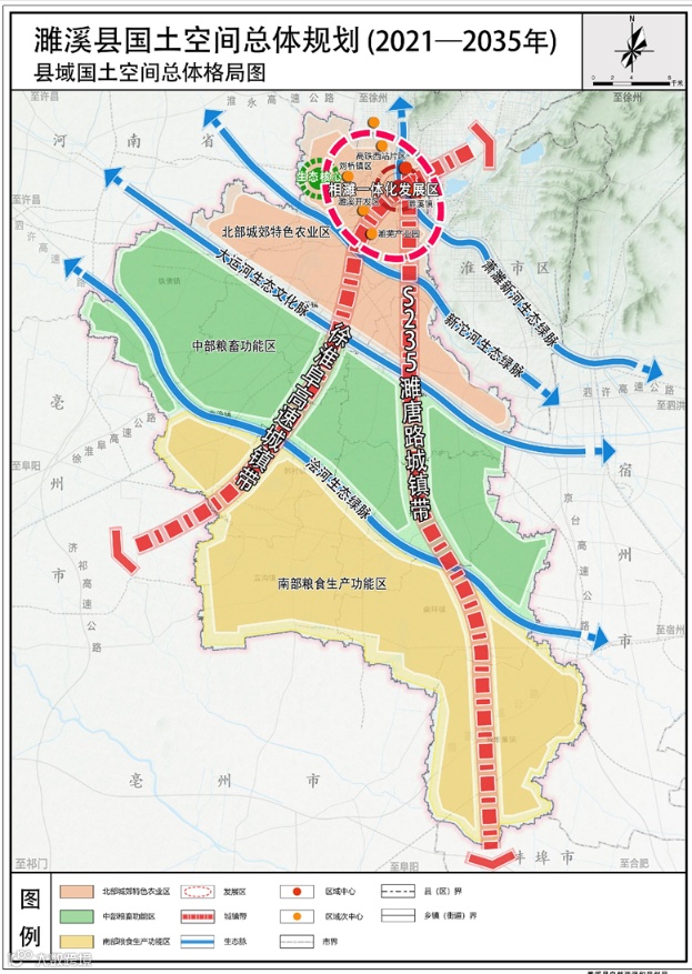 根据《濉溪县国土空间总体规划(2021-2035年)》,构建了"一主两带三区四脉"的县域国土空间总体格局,为濉溪县未来15年的发展提供了明确指引。