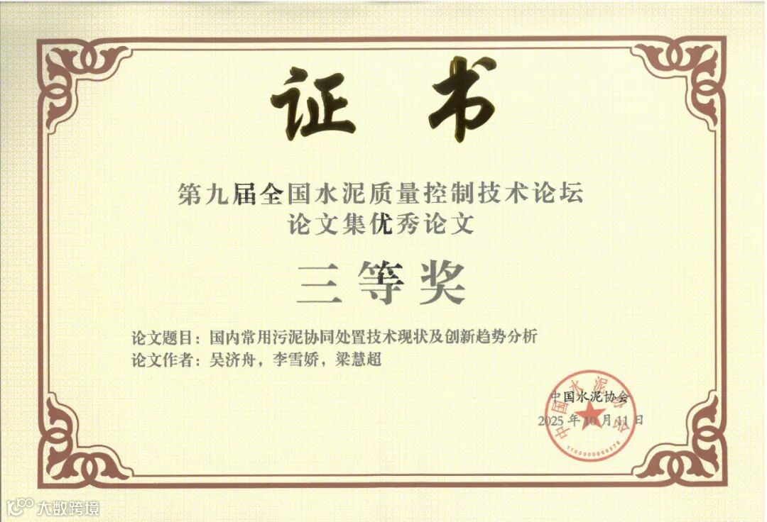 本次入选的论文集收录了来自科研院所、检测机构、生产企业等单位的优秀研究成果,集中展现了我国水泥质量控制领域的最新研究进展和技术创新成果。国检京诚获奖论文《国内常用污泥协同处置技术现状及创新趋势分析》在环保的角度上,系统梳理了国内污泥协同处置技术的研究现状,对比分析了水泥窑、陶粒窑、垃圾焚烧炉等多种协同处置方式的技术特点与适用性,并深入探讨了水泥窑协同处置的技术路线、工艺优化及典型工程实践案例,指出水泥窑协同处置技术在工艺稳定性和污染物控制等方面仍存在提升空间提出了污泥协同处置将向智能化和多学科融合方向发展,政策引导与市场需求将共同推动技术创新与产业升级。