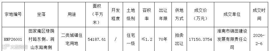 HNP26001地块的落槌,是淮南市2026年土地市场的开门红,也向市场传递了积极信号——淮南城市更新步伐坚定,中心城区价值持续彰显。成交价1.71亿元、面积81亩、容积率1.2,这些数据背后是城市规划者、开发企业和市民对美好生活的共同追求。