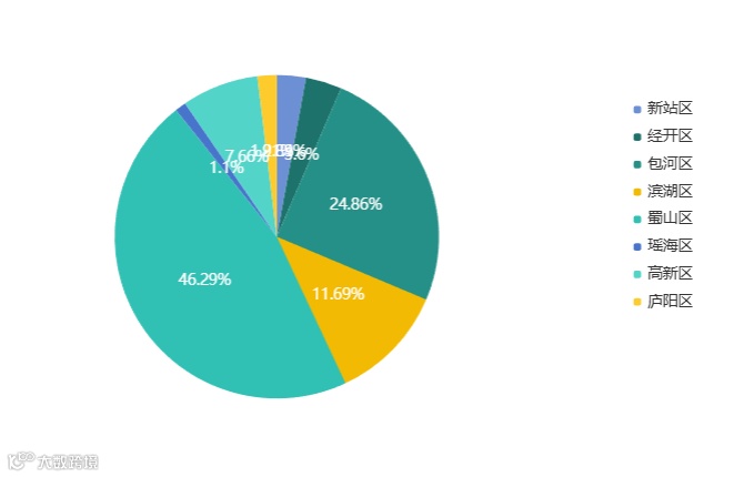 分区域来看,蜀山区成交面积占比46.29%,九区排名第一。包河区成交面积占比24.86%,排名第二。滨湖区成交面积占比11.69%,排名第三。