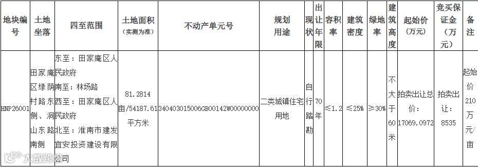 HNP26001地块的拍卖是淮南市2026年土地市场的重要开局。这宗81亩优质住宅用地凭借其优越的区位条件、合理的规划指标和良好的市场前景,有望成为带动田家庵区区域发展的重要项目。
