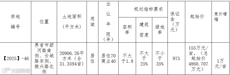 六、本次国有建设用地使用权拍卖会定于2025年11月7日15时在界首市公共资源交易中心举办。