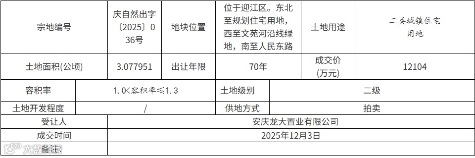 按照《中华人民共和国土地管理法》、《中华人民共和国城市房地产管理法》、《招标拍卖挂牌出让国有土地使用权规定》和《招标拍卖挂牌出让国有土地使用权规范》等有关法律法规,遵循公开、公正、公平的原则。我局于 2025年12月3日拍卖出让 1 宗国有土地使用权。现将有关情况公示如下: