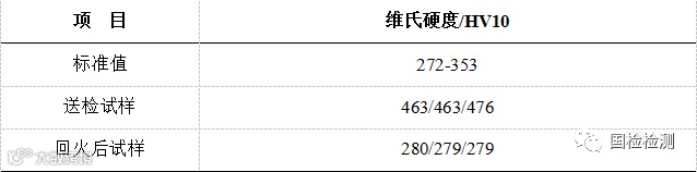 选取试样与经580℃回火一小时后的试样分别进行维氏硬度测试,结果如表1所示,可见试样芯部硬度远远高出“GB/T 3098.2-2000”标准关于10级螺母硬度规定的上限,而经回火处理后的试样芯部硬度符合标准要求。
