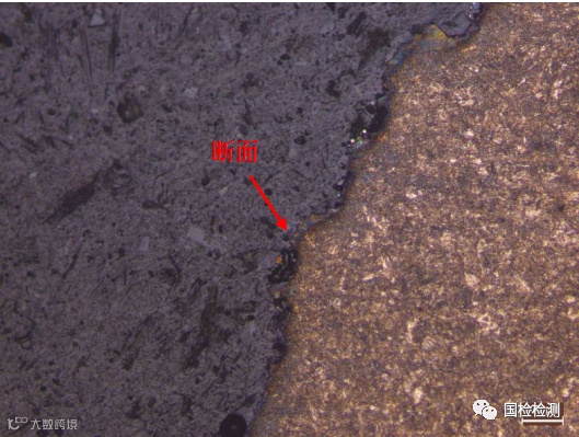 图12所示为断口附近金相组织,可见断面凹凸不平,未发现明显的脱碳或分支裂纹。