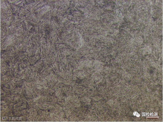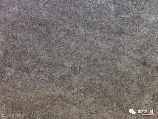 图13所示为试样芯部金相组织,为马氏体组织。将试样重新进行580℃回火一小时处理,金相组织如图14所示,为回火索氏体组织,两者组织形态存在明显差异。