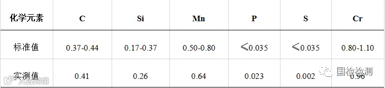 采用直读光谱法对试样进行化学成分分析,结果如表2所示,符合“GB/T 3077-1999”标准关于40Cr的规定。