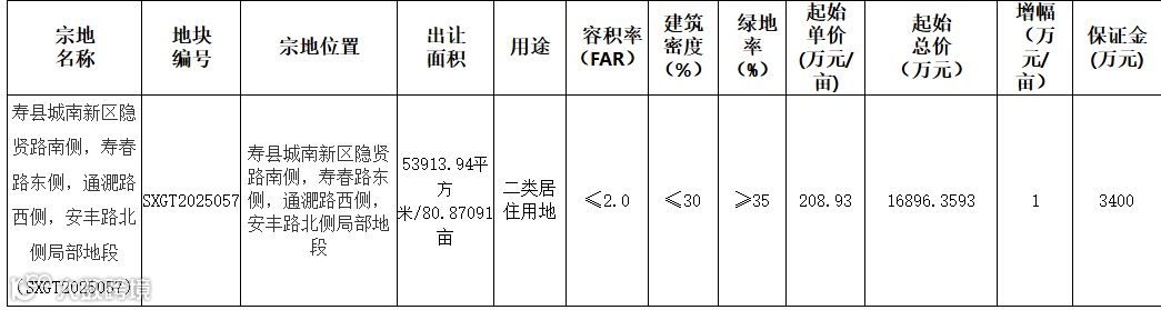 (二)出让地块具体规划指标以寿县自然资源和规划局出具的正式文件为准、出让地块具体情况详见出让文件。以上参考地价不含契税、印花税。