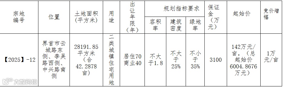 六、本次国有建设用地使用权拍卖会定于2025年9月26日15时在界首市公共资源交易中心举办。