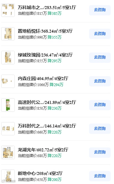 从贝壳二手房挂牌情况来看,6月份有51193套房源价格下调,多个豪宅项目房源降价上百万,最高降价385万,因为豪宅项目本身挂牌价格很高,所以降价上百万后,价格依然较高。