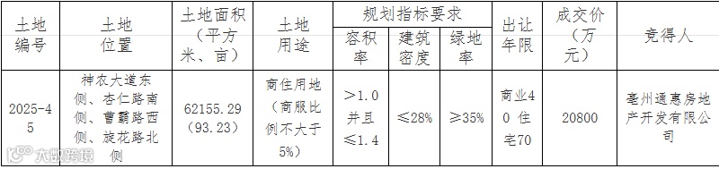 亳州市于10月30日成交2宗住宅用地,共147亩