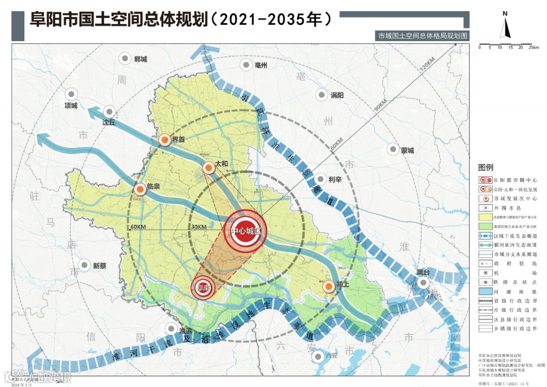规划构建的“一主四次、一带多点” 市域城镇空间格局,明确了中心城区(“一主”)的核心引领作用。其中,“推进阜南撤县设区” 的战略部署尤为引人注目,标志着阜阳中心城区扩容迈出实质性步伐。未来,中心城区将与阜南实现同城化发展,规划人口规模将达300万人以上,一个更具规模效应和辐射带动能力的区域中心城市呼之欲出。交通方面,规划打造 “阜阳123出行交通圈” (1小时联系合肥、郑州等相邻地市及核心城市,2小时联系省内及武汉、杭州、上海等,3小时通达长三角主要城市和全国重要节点),大幅提升阜阳的区位可达性和枢纽地位。水运方面,依托淮河、沙颍河等国家高等级航道,阜阳港多个港区的建设将重塑“水运阜阳”优势。