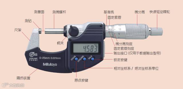 我们经常用的千分尺,学名应该叫螺旋测微器,它是依据螺旋放大的原理制成的,即螺杆在螺母中旋转一周,螺杆便沿着旋转轴线方向前进或后退一个螺距的距离。因此,沿轴线方向移动的微小距离,就能用圆周上的读数表示出来。