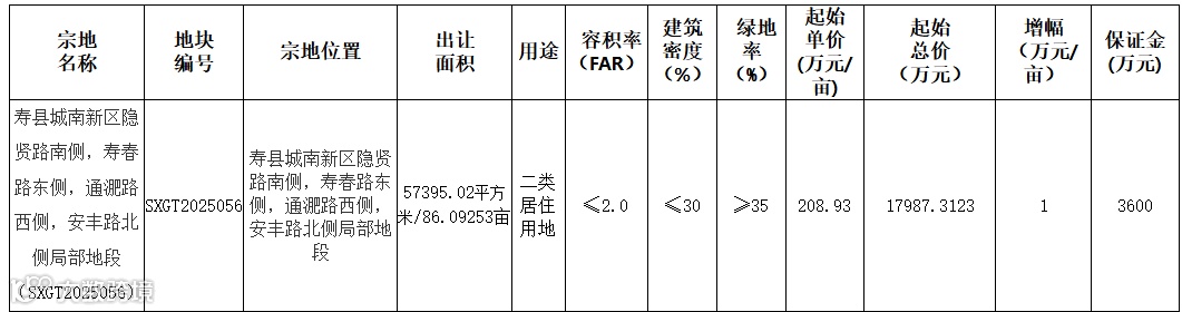(二)出让地块具体规划指标以寿县自然资源和规划局出具的正式文件为准、出让地块具体情况详见出让文件。以上参考地价不含契税、印花税。