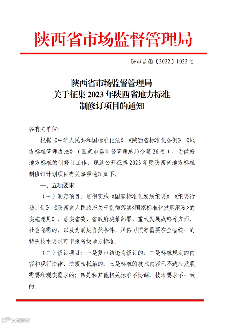 日前,陕西省市场监督管理局印发《关于下达2023年度陕西省地方标准制修订项目计划的通知》(陕市监函【2023】410号),公布了2023年陕西省地方标准制修订项目计划。其中,国检京诚陕西公司申报的地方标准《突发水环境事件应急监测工作指南》获批立项。