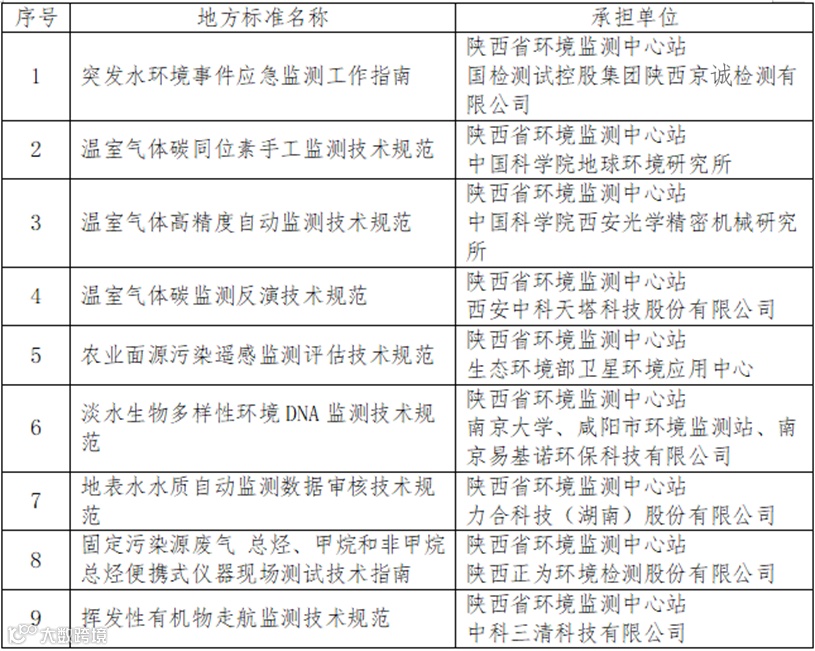 陕西省环境监测中心站组织申报的《温室气体碳监测反演技术规范》等9项地方标准获批立项。上述标准聚焦生态环境监测新领域新技术,在碳监测、水生生物多样性、农业面源、大气污染控制、突发水环境事件应急监测等方面发力,推进陕西省生态环境监测标准体系建设,为陕西生态环境质量、生物多样性保护等方面提供技术支撑。