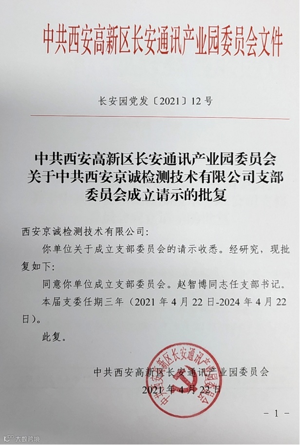 4月22日,中共西安京诚检测技术有限公司党支部一届一次全体党员大会在西安公司召开,西安高新区长安通讯产业园党委张长平同志出席了会议,西安公司总经理及全体党员参加了会议。