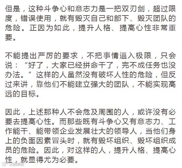 但是,仅靠这些会犯错误,甚至给组织带来极大的危害。所以,用好自己的才能,驾驭好斗争心,就必须磨炼自己的心性。