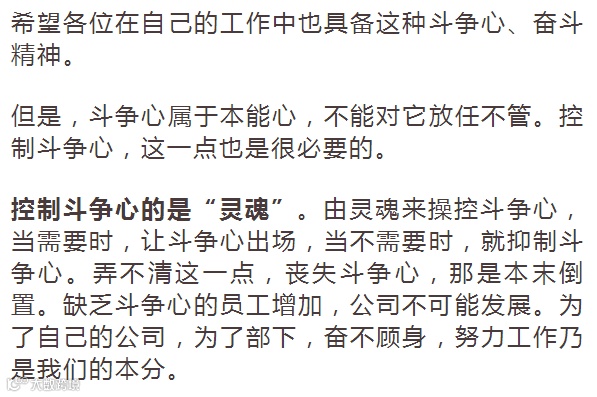 我并不是要求大家都成为圣人君子。经营企业、开展事业,需要杰出的才干和领导能力,需要激烈的斗争心和强大的意志力,需要这样的本能心。