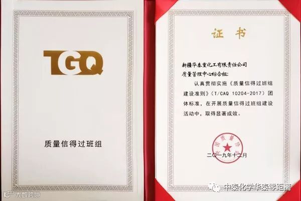 近日,继新疆中泰集团华泰公司质量管理中心综合分析组在第38届全国石油和化工行业质量管理小组代表大会上获得 “优胜杯”质量信得过班组称号后,再传喜讯,该小组又被中国质量协会命名为“全国质量信得过班组” 称号,即“国优”称号。这一殊荣是华泰公司乃至全集团在质量信得过班组活动方面取得的历史最好成绩。