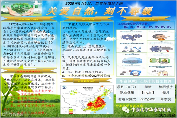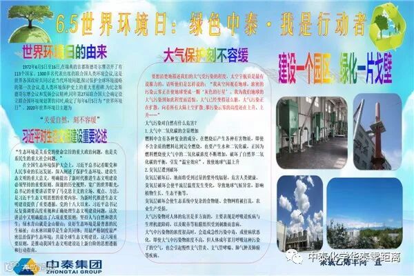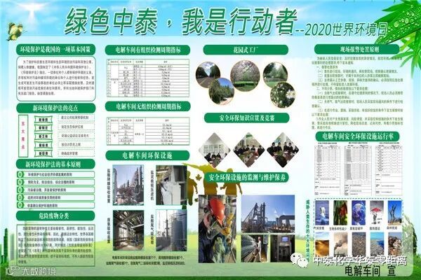 ,普及全员环保知识,华泰公司组织开展以“绿色中泰,我是行动者”主题板报竞赛等活动,利用宣传栏、广播站和微信等多种平台对环保法规、环保文化、环保管理先进技术管理经验进行宣传,进一步提高全体员工环保意识。此次板报评比是“安全生产月”及“6.5世界环境日”的系列活动之一。