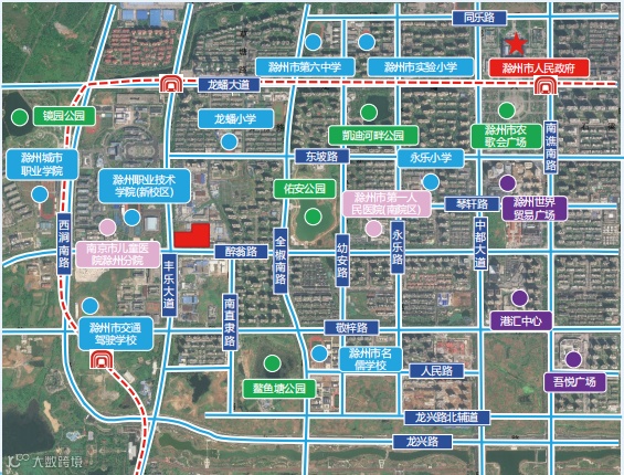 该地块位于丰乐大道与醉翁路交叉口东北侧,面积37.2亩,规划为商业、商务金融用地,容积率1.1-2.0 。地块西侧紧邻贯穿南北的丰乐大道,且靠近滁宁城际线,交通便捷。其独特的价值在于“高校经济圈”:周边聚集了滁州职业技术学院、滁州城市职业学院等多所院校,师生群体庞大,消费需求旺盛。同时,南京市儿童医院滁州分院、滁州市第一人民医院(南区)等医疗配套也分布周边。该地块适合开发为集商业、办公、休闲于一体的综合性商业体,填补区域高端商业空白,锁定稳定客流。
