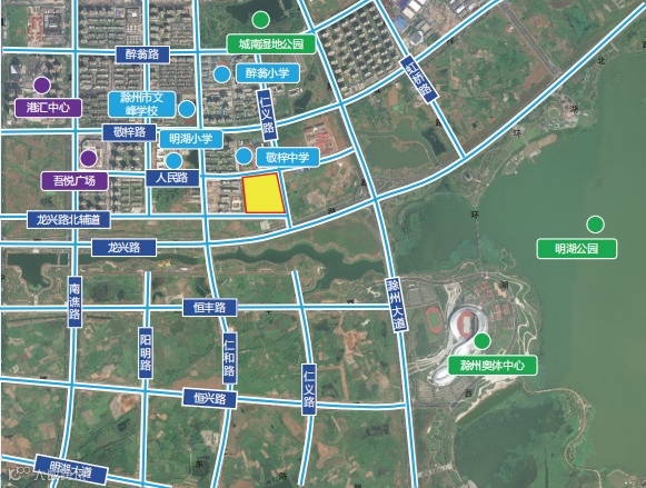该地块是本次推介的“压轴大戏”,面积约101.54亩,规划为城镇住宅兼容商业用地,容积率低至1.2-1.6,是七宗地块中容积率最低的,具备打造高端低密住区的先天条件 。地块北临人民东路,东临仁义路,南靠龙兴路辅路,路网发达,通达性佳。其最大的潜力在于“明湖板块”的崛起:周边明湖公园、滁州奥体中心、城南湿地公园等生态文体配套环绕,环境优美;明湖小学、敬梓中学等教育资源逐步落地;吾悦广场、苏宁广场等商业配套辐射。随着城市“西进东扩”战略的推进,明湖板块已成为滁州城市发展的新中心和改善置业的热点区域。此宗地块方正且体量适中,是打造区域标杆级品质大盘的不二之选。