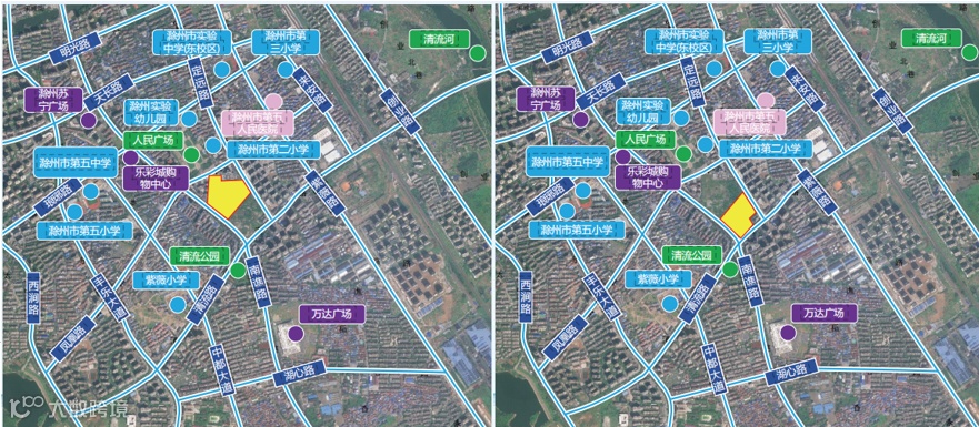 地块1&2:凤凰东路与定远路交叉口西南侧、南谯路与清流路交叉口东北侧——老城核心,成熟配套