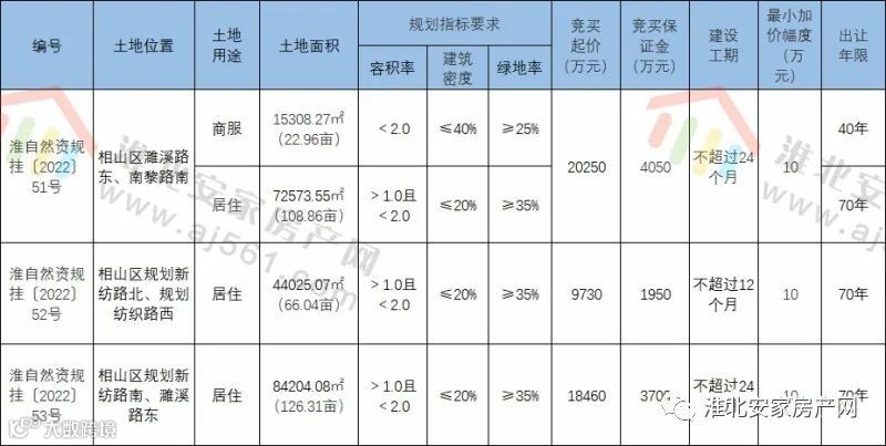 竞买保证金帐户名称:淮北市土地储备发展中心;