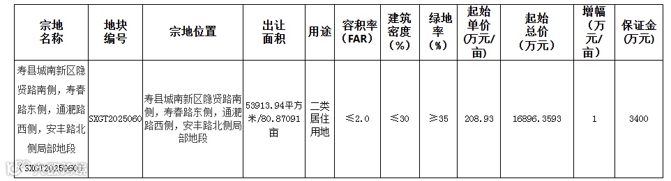 地块的起始单价约为208.93万元/亩,这一价格水平综合考虑了区域发展潜力、市场预期及规划要求,为市场主体提供了合理的参与空间。竞买保证金设定为3400万元,既体现了交易的严肃性,也为有实力、有诚意的企业参与竞买设立了门槛。根据公告安排,若至2025年11月3日报名人数不足三人,将自动转为挂牌方式出让,确保了土地出让流程的灵活性和效率。这一系列规范、透明的操作流程,体现了寿县在土地资源管理和市场调控方面的成熟与稳健。