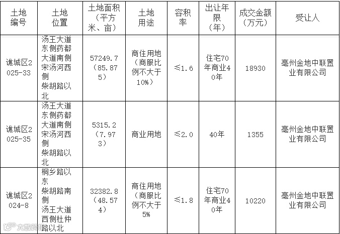 亳州金地中联置业有限公司竞得2宗住宅用地,共134亩