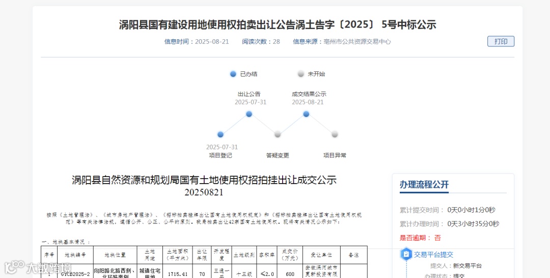 2025年8月21日,涡阳县自然资源和规划局一纸公告引发市场强烈关注——42宗国有建设用地集中成交,安徽涡河城市更新投资有限公司包揽全部地块,总成交面积超10万平方米。这场规模空前的土地出让,不仅刷新了皖北县域单日土拍纪录,更与《涡阳县国土空间总体规划(2021-2035年)》形成深度联动。从老城住宅更新到紫光大道商业集群崛起,每一宗地块都精准卡位城市发展节点,标志着这座"皖北粮仓"正以土地为支点,撬动全域高质量发展的新引擎。