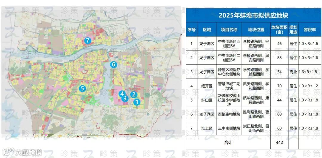 本次重点推介的7宗拟供应地块,总面积442亩,主要分布于龙子湖区(含经开区)、蚌山区和淮上区的核心发展板块。